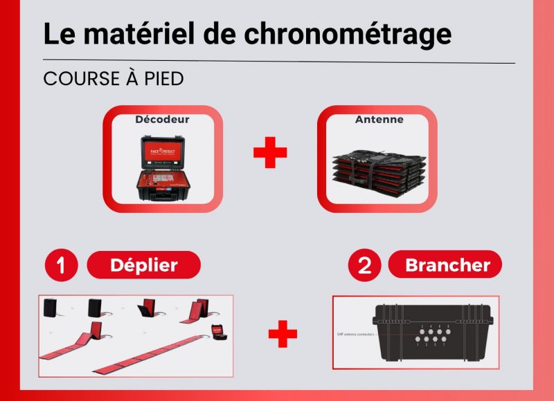 Quelques jours avant l’événement, vous recevez un kit complet de chronométrage directement sur le lieu de la course ou à l’adresse souhaitée.